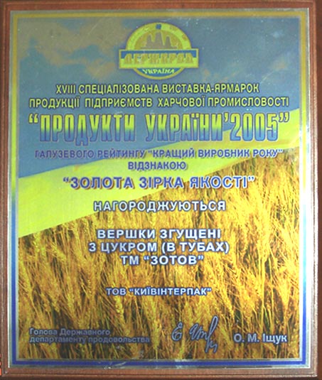 (Премия Гран-При за "Сливки сгущенные с сахаром" ТМ "ЗОТОВ")